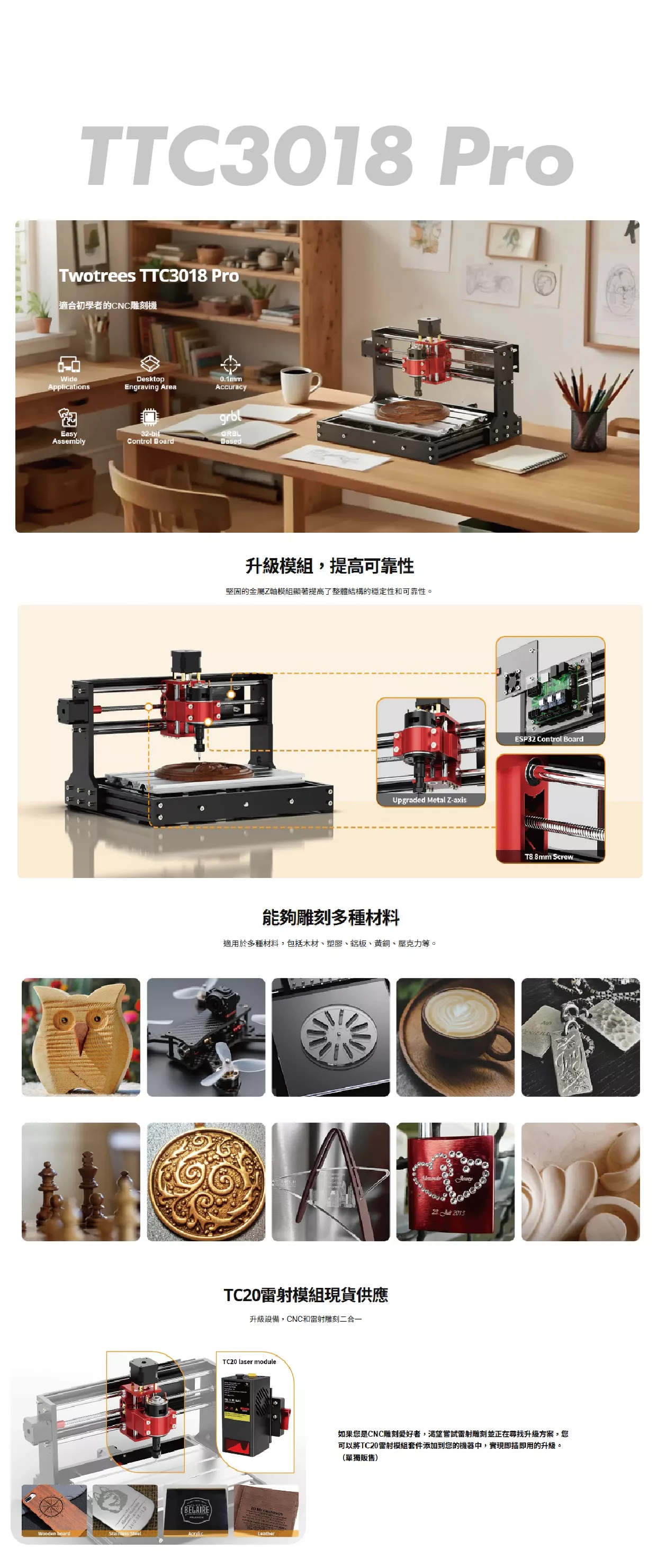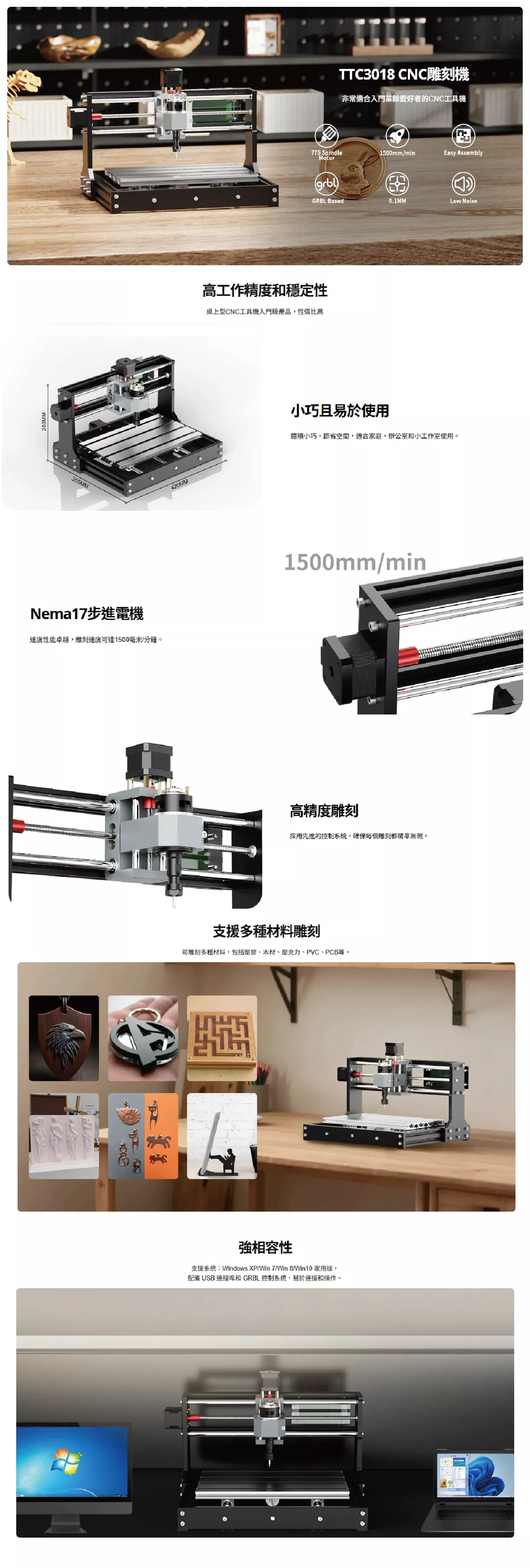 ✔️支援多種材料雕刻 : 塑膠、木材、壓克力、PVC、PCB