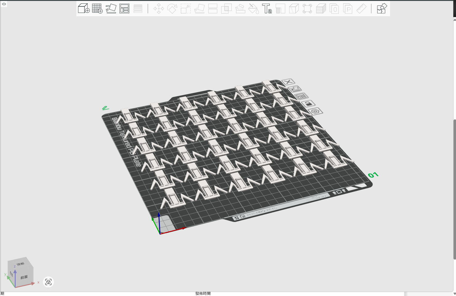 傳統工法的痛點: 為了不讓噴頭與列印零件碰撞,您只能在平面上排隊,導致一次能印的數量受限。