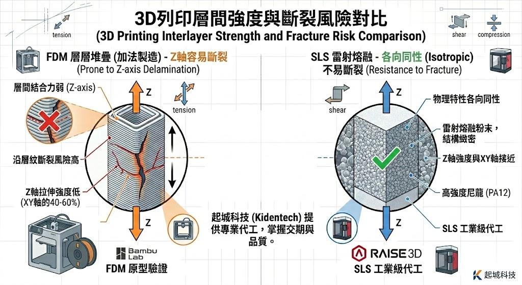 FDM 的痛點: FDM機台雖快,但 Z 軸層間結合力始終是弱點,零件易沿紋路斷裂,不適合直接出貨給終端用戶。
